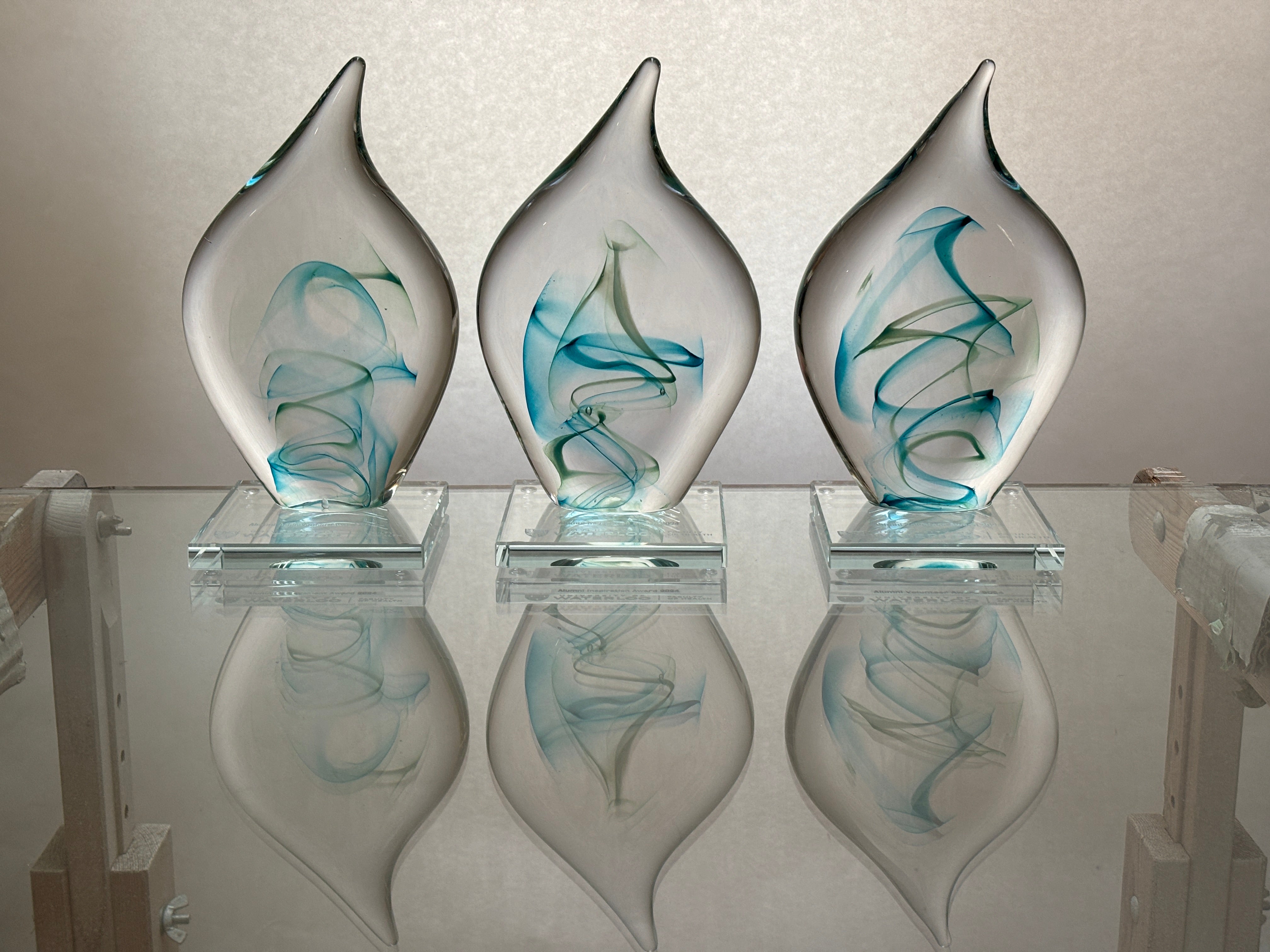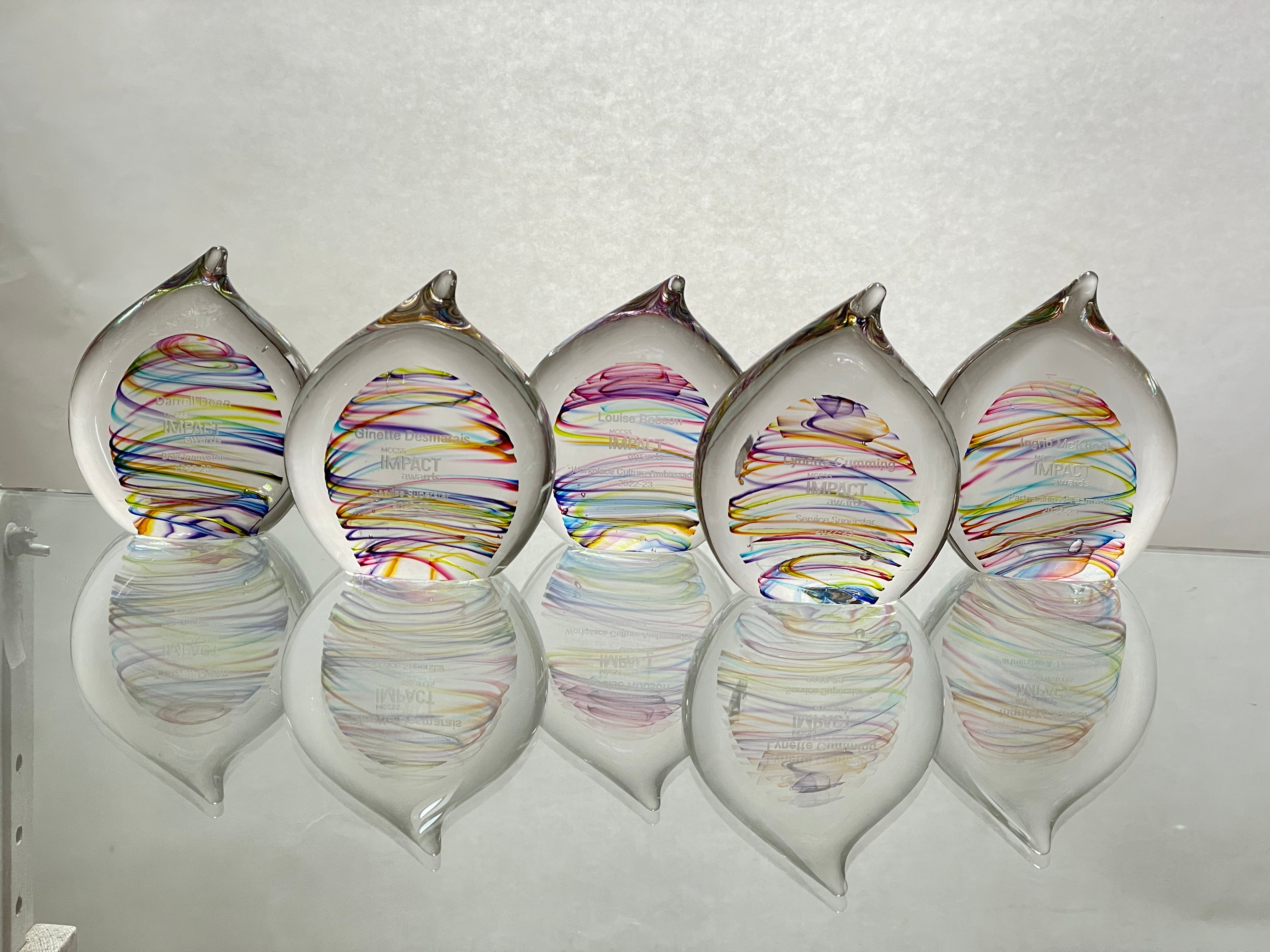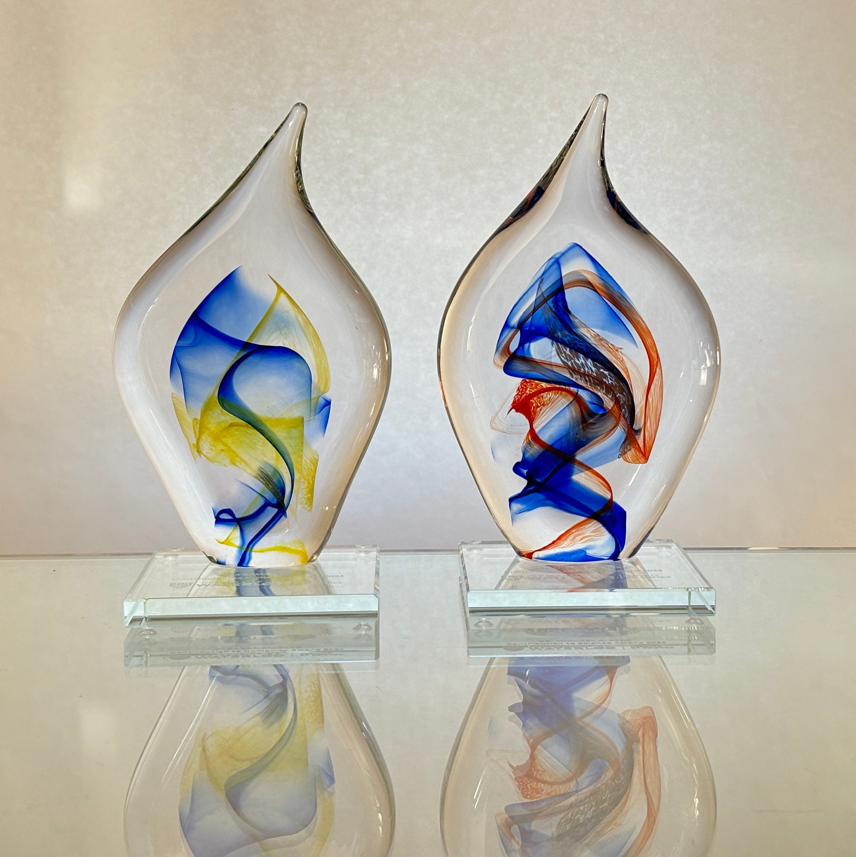 I provide a large selection of Awards and Corporate gift paperweights. From one or two pieces to hundreds of pieces. Please contact me for options and pricing or to work together to make something special for your event.