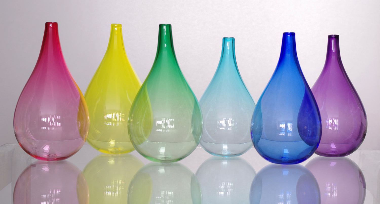 Blown Glass Vases in a drop shape.